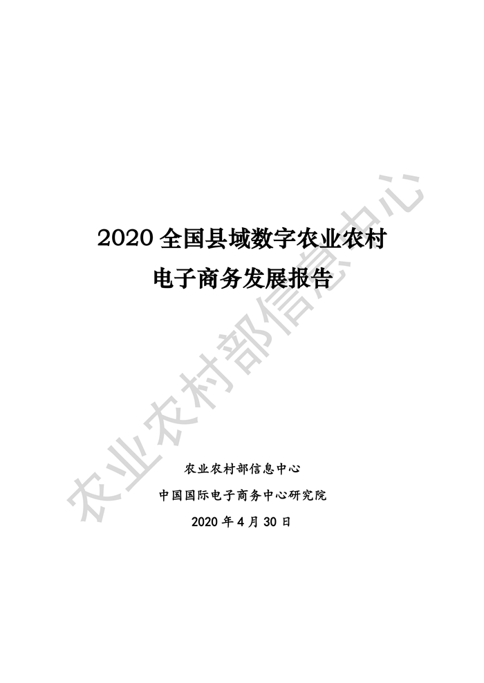 4月30日,農(nóng)業(yè)農(nóng)村部信息中心聯(lián)合中國國際電子商務中心研究院在京舉辦《2020全國縣域數(shù)字農(nóng)業(yè)農(nóng)村電子商務發(fā)展報告》線上發(fā)布會。