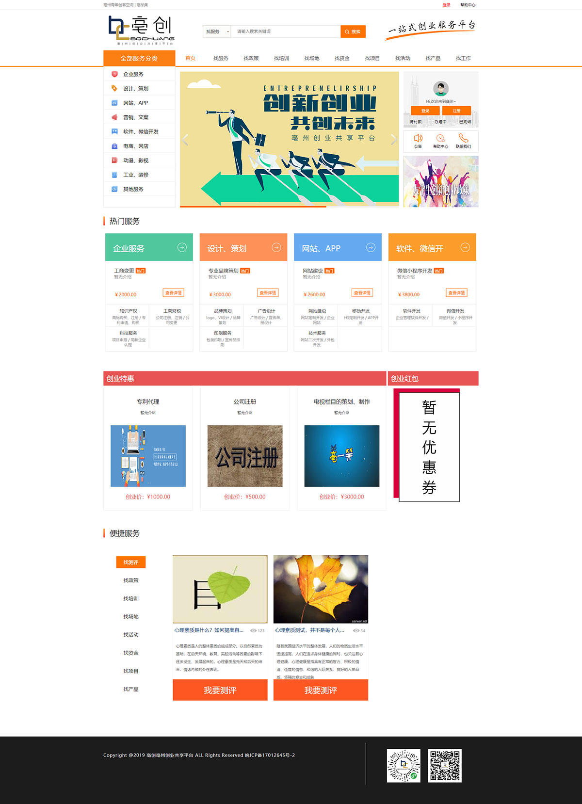 針對(duì)創(chuàng)客所需商業(yè)服務(wù)、創(chuàng)客項(xiàng)目資金(補(bǔ)助)申請(qǐng)、企業(yè)在線服務(wù)的綜合性創(chuàng)業(yè)、孵化、共享平臺(tái)。集合各類創(chuàng)業(yè)服務(wù)商的資源,將行政、融資、營(yíng)銷、人才、商業(yè)服務(wù)等基礎(chǔ)領(lǐng)域在內(nèi)的多項(xiàng)能夠扶助創(chuàng)業(yè)項(xiàng)目快速成長(zhǎng)的服務(wù)打包到一起,為創(chuàng)業(yè)者提供一站式、高品質(zhì)的創(chuàng)業(yè)服務(wù)。